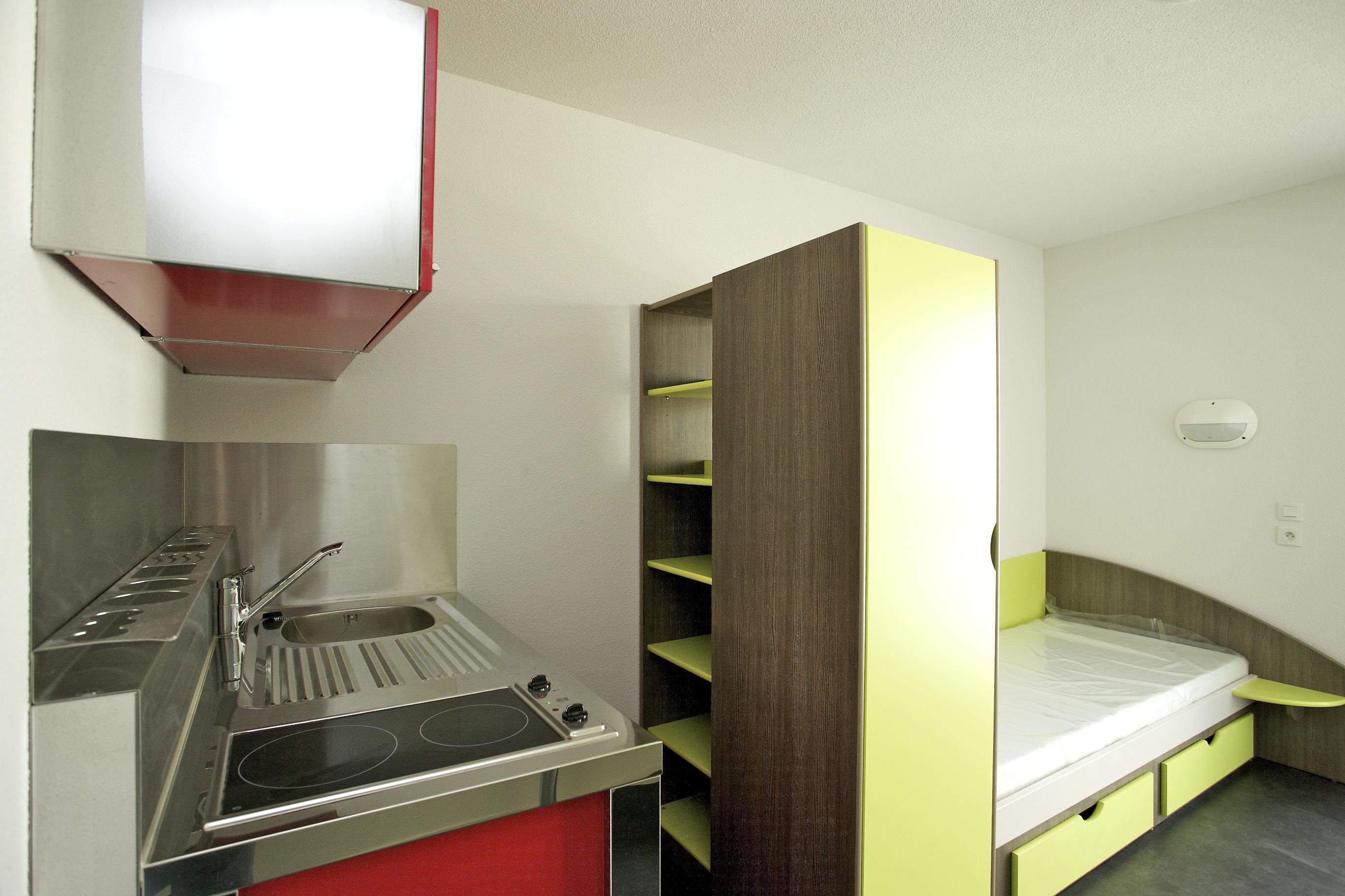 La résidence comprend 136 chambres de 9 m² et 104 studios de 18 m², équipés de cabine 3 fonctions (WC, douche, lavabo) + 8 studios accessibles PMR